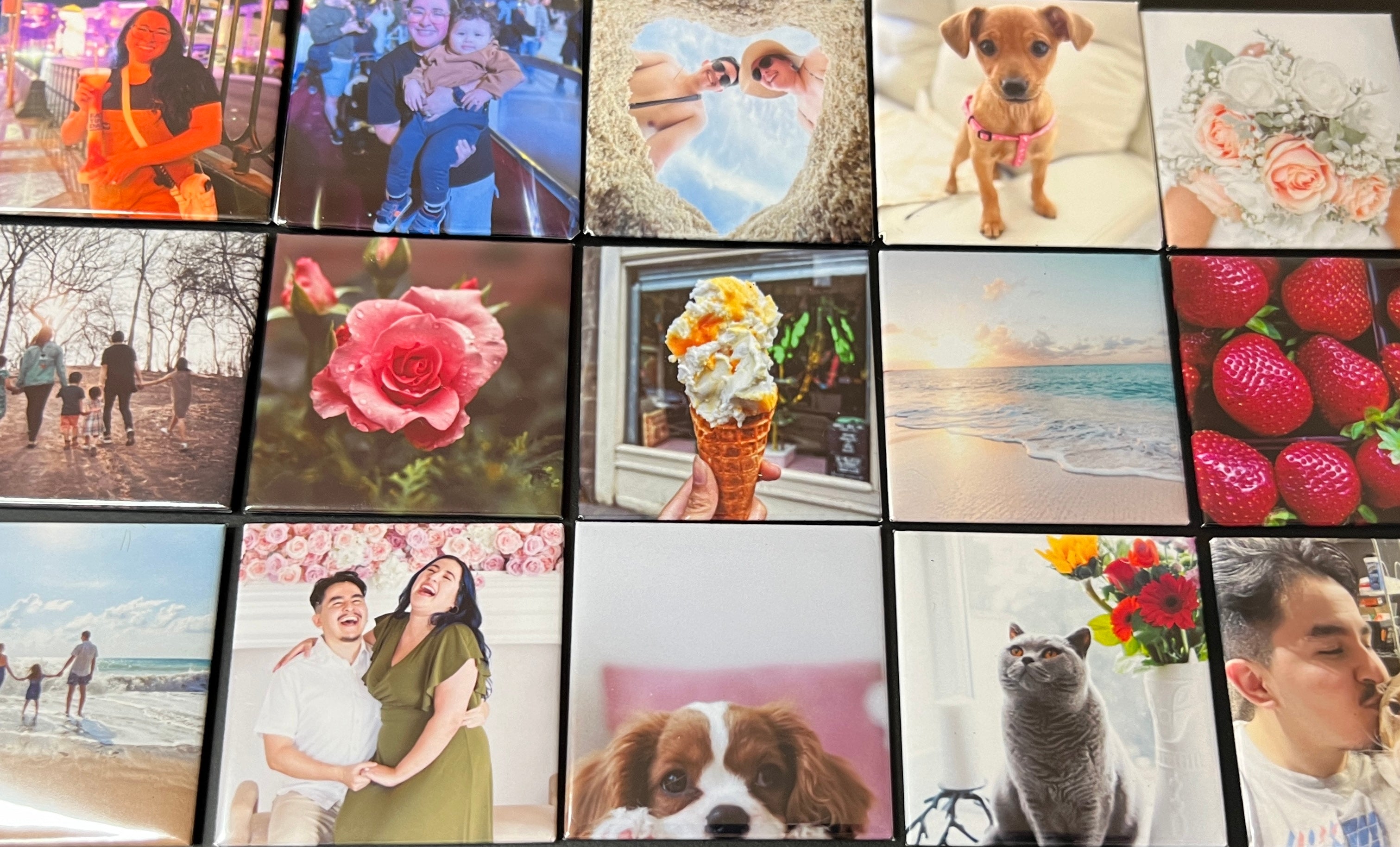 Upload your pictures and we'll craft beautiful high quality handmade 2"x 2" photo magnets